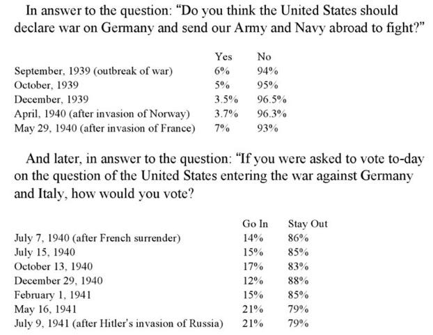 Pre-WWII US was an isolationist nation, which is a very different nation from the one we’re living in now. Germany wasn’t an existential threat in the popular US imagination of the time, the war made little sense insofar as US involvement was concerned. It’s unbelievable to imagine how far things have changed, how different Americans have become.